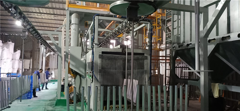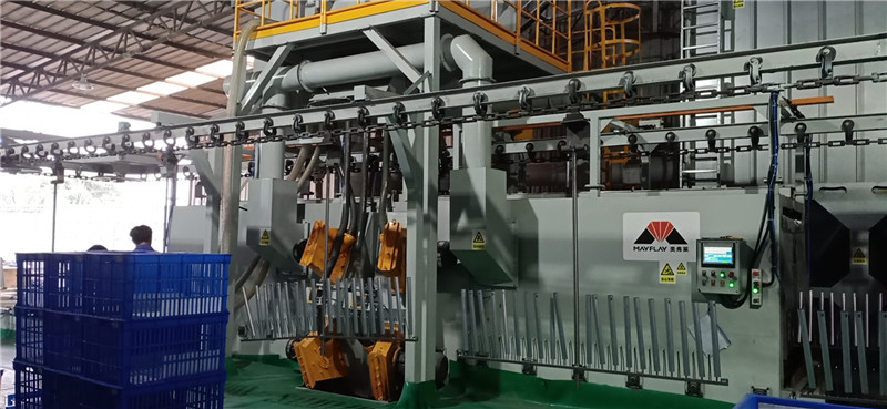 Shot blasting cleaning line solution for parts of bullet train brake system