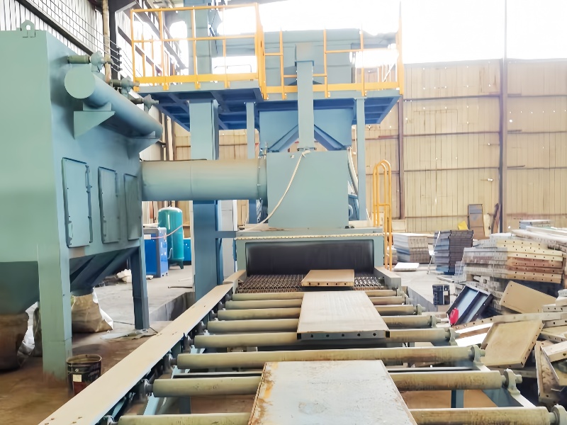 Roller conveyor blast machines are specifically designed to handle large and heavy workpieces such as steel plates, H-beams, I-beams, pipes, and large steel structures. These machines are ideal for cleaning, descaling, rust removal, and surface preparation of large components in industries like steel manufacturing, shipbuilding, construction, and automotive.