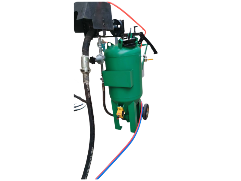 A dustless water sand blasting pot, also known as a wet blast pot, works on the principle of combining water with abrasive media and using compressed air to propel the mixture onto a surface at high speed to achieve cleaning, stripping or other surface preparation tasks. Here's a detailed explanation of its working principle: