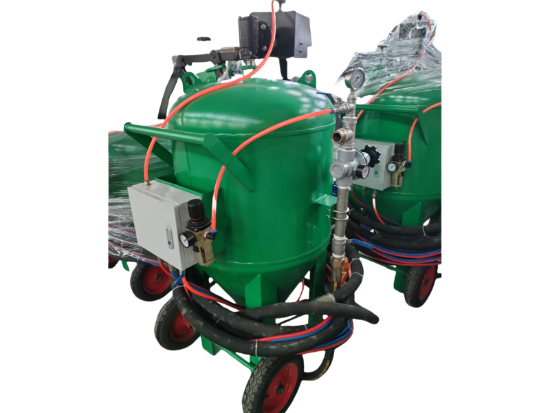 1.When the air compressor starts working, it pressurizes the blast pot and generates a stream of high-pressure air. This high-pressure air flows into the blast pot and mixes with the abrasive media and water.